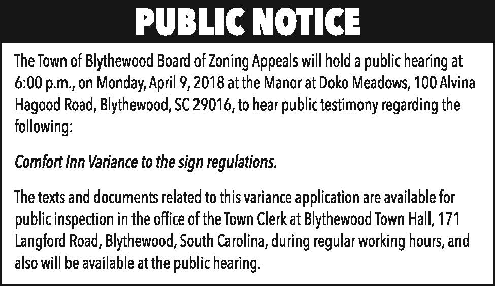 Public Hearing – Blythewood Board of Zoning Appeals
