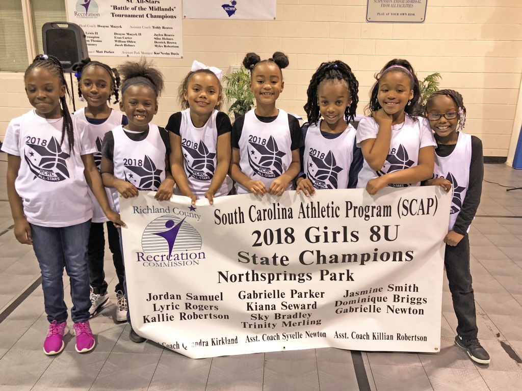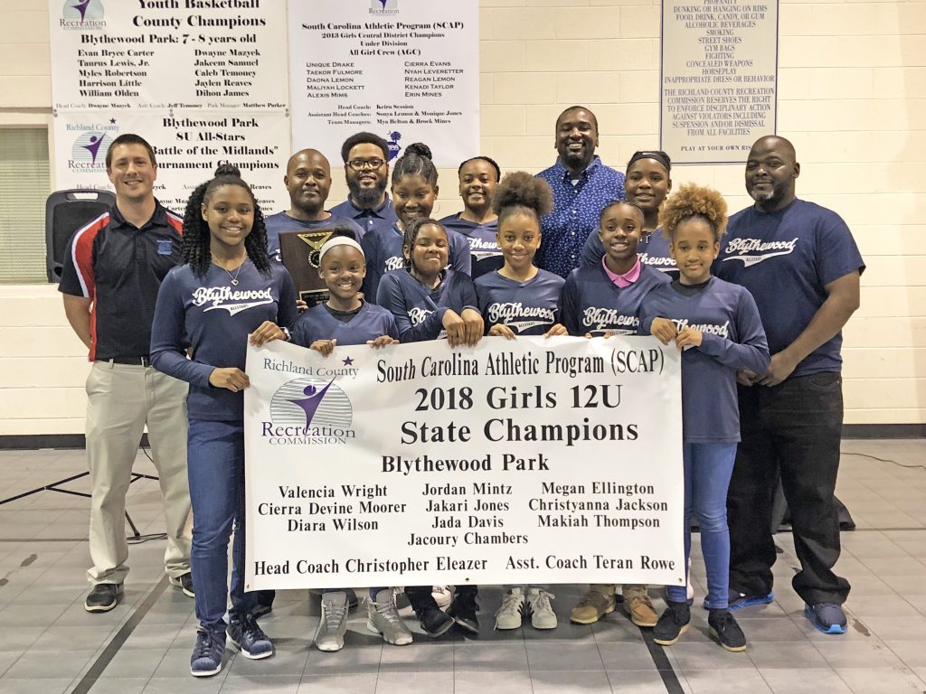 BLYTHEWOOD – The past year for Blythewood basketball has been spectacular, and it continues to get even sweeter. This year, the 8U and 12U girls’ Richland County Recreation Commission All-Star teams won South Carolina Athletic Program state titles. They were presented with banners and plaques in a ceremony on March 30. Current Westwood standout Unique Drake starred in the same program and helped secure a district championship.
