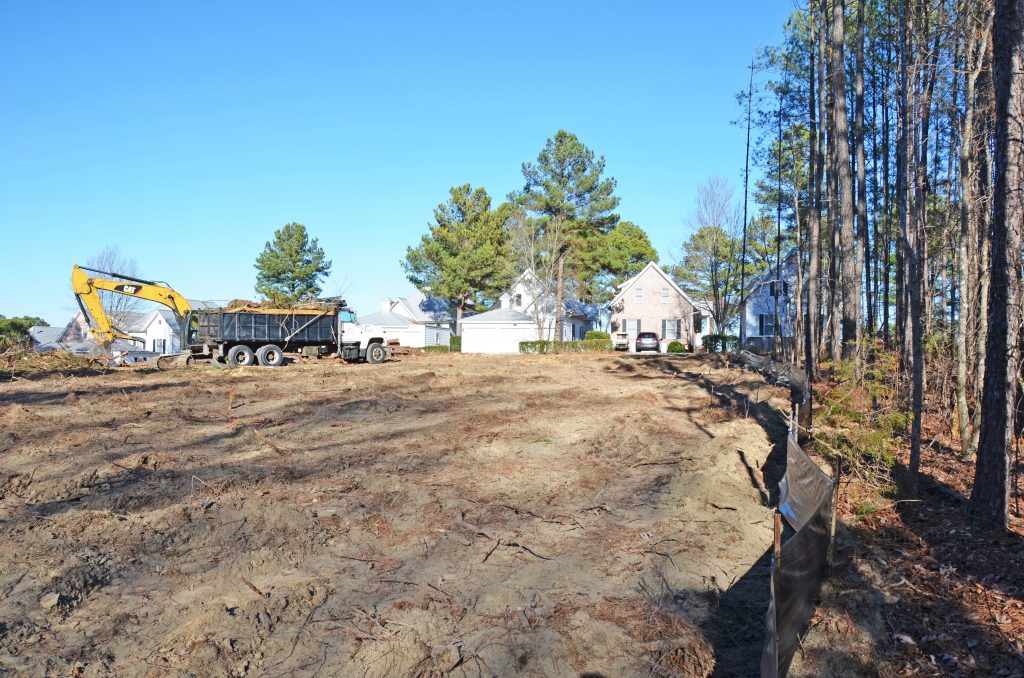 This photo was taken on Jan. 14, 2018, shows a clear cut in progress on five contiguous wooded lots between Links Crossing Drive and Golden Spur Lane in Cobblestone Park. | Michael Criss