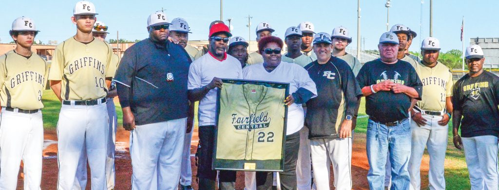 The Fairfield baseball family welcomed the parents of fallen Griffin Mykel Beaufort and presented them with Beaufort’s newly retired jersey. | Ross Burton