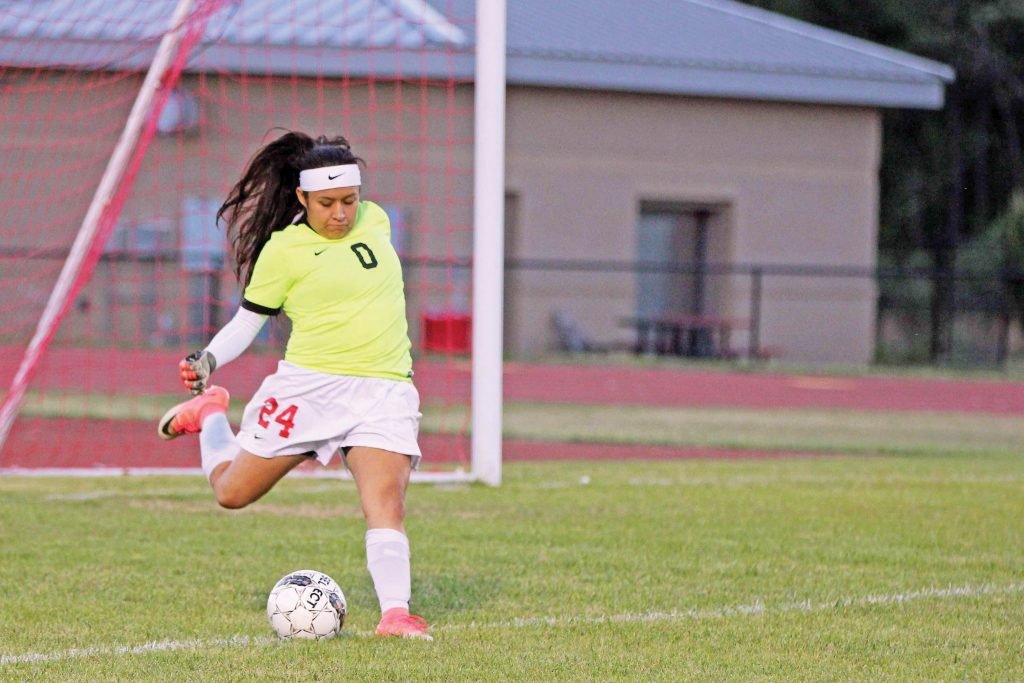 BLYTHEWOOD – Redhawks’ goal keeper Jennifer Angeles (24) gears up to kick the ball back in to her teammates as they squared off against South Pointe. Westwood fell to the Stallions, 6-0, but with their follow up win over Ridge View, they clinched their first playoff berth in program history.