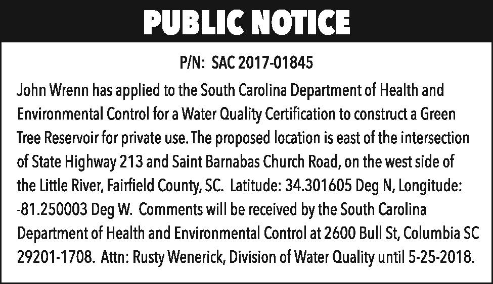 Public Notice – Water Quality Certification, P/N: SAC 2017-01845