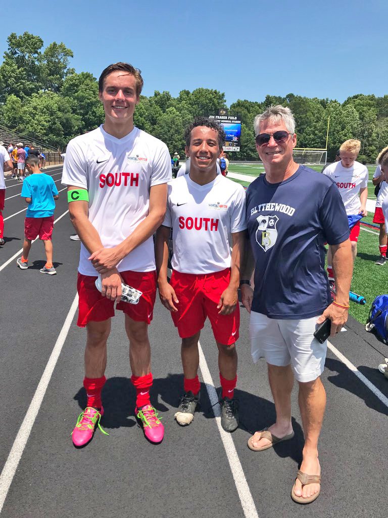 ANDERSON – Logan Shay, left, and Devin Shepard, center, represented Blythewood last Saturday in the North-South Soccer Classic game at T.L. Hanna High School. Shay, who was selected as Captain for the South, had a goal and assist in the South’s win 5-2 and was named team MVP following the game.