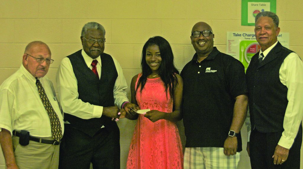 BLYTHEWOOD – The Bethel-Hanberry Athletic Alumni Association Scholarship (B-HAAS) awarded two $1,000 scholarships to Blythewood graduating seniors Kaylee McLendon and Osaze Ekue on Sunday. Members of B-HAAS making the presentation, from left: Joe Kelly, Ted Manning, Osaze Ekue, Town Councilman Larry Griffin and James Woods. At right, Manning and Kaylee McLendon.