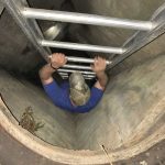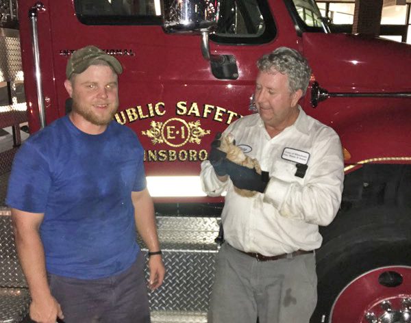 WINNSBORO – An evening phone call from a concerned CVS customer about hearing a cat down the parking lot storm drain turned into a four-hour, multi-department rescue effort. Fairfield County fireman Jay Joyner lowered the truck’s ladder into the storm drain for Trip Peak, Town of Winnsboro Director of Gas, Water and Sewer, and Mikey Bunting, Gas, Water and Sewer Foreman. The two crawled approximately 150 feet through the storm drains before locating the trapped kitten, which is now at the Fairfield County Animal Shelter awaiting adoption.