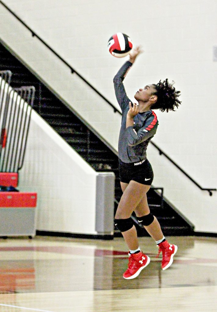 Ta’Naya Corley (3) uses her ups to push past the defending block. | Photos: Leroy Howard