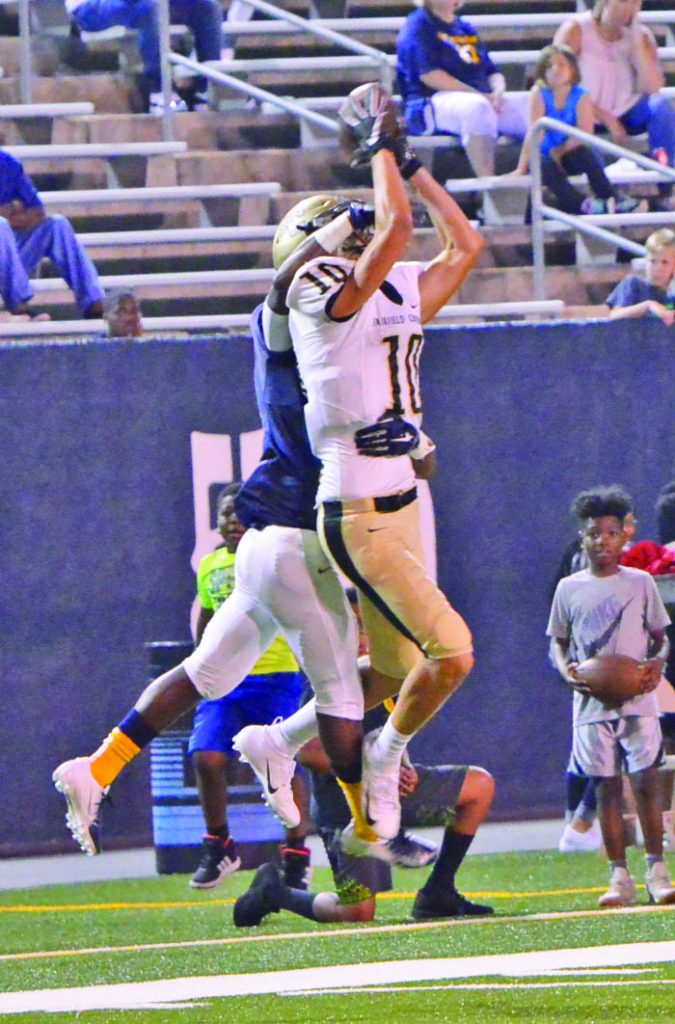 Jacob McManus (10) leaves it all out with his stellar aerial reception. | Joe Seibles