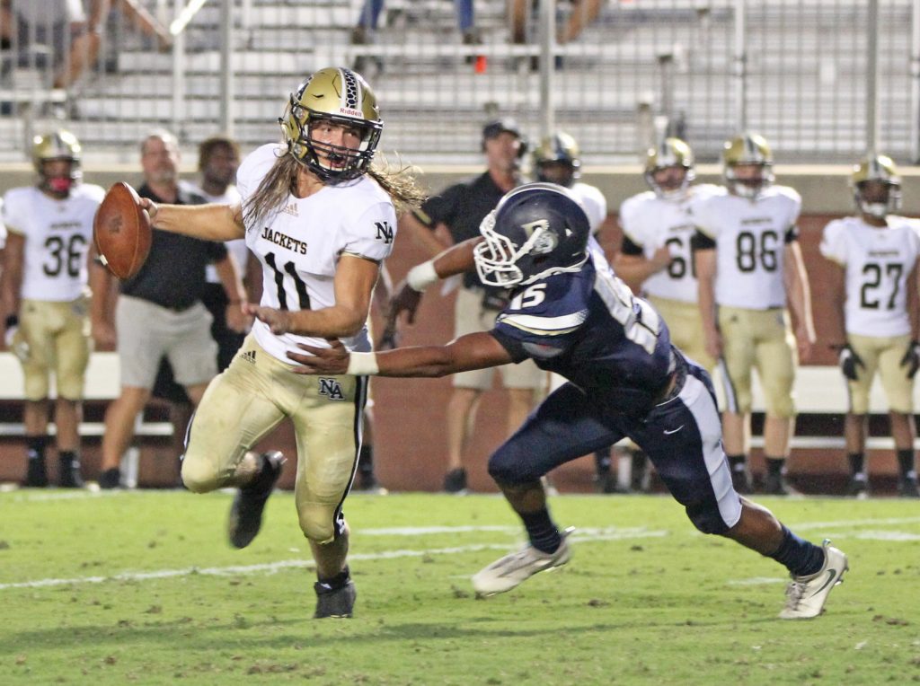 The Bengals first drive ended in a three-and-out punt after three straight incomplete passes. North Augusta struck the Bengals with a few big plays on their first offensive possession. Yellow Jackets quarterback completed passes of 16 yards and 32 yards, and had a 16-yard scramble on their opening drive.