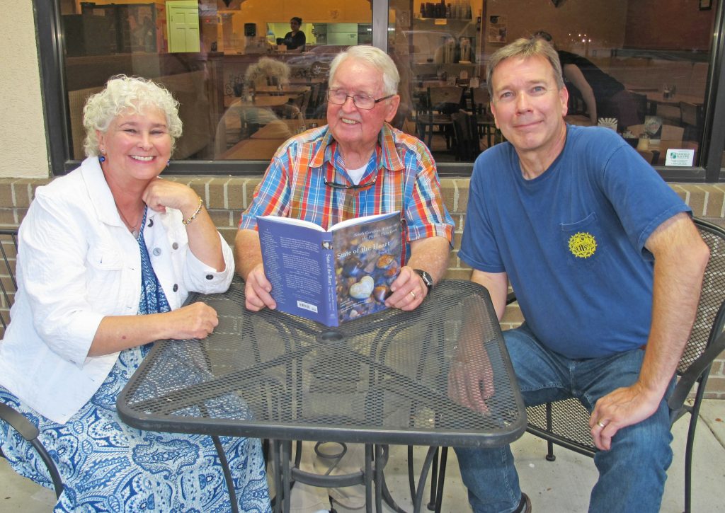Blythewood outdoor writer Pat Robertson, center, displays the final of three volumes of State of the Heart that includes contributions from him and fellow Blythewoodians Jane Zenger, left, and Chris Horn. | Barbara Ball