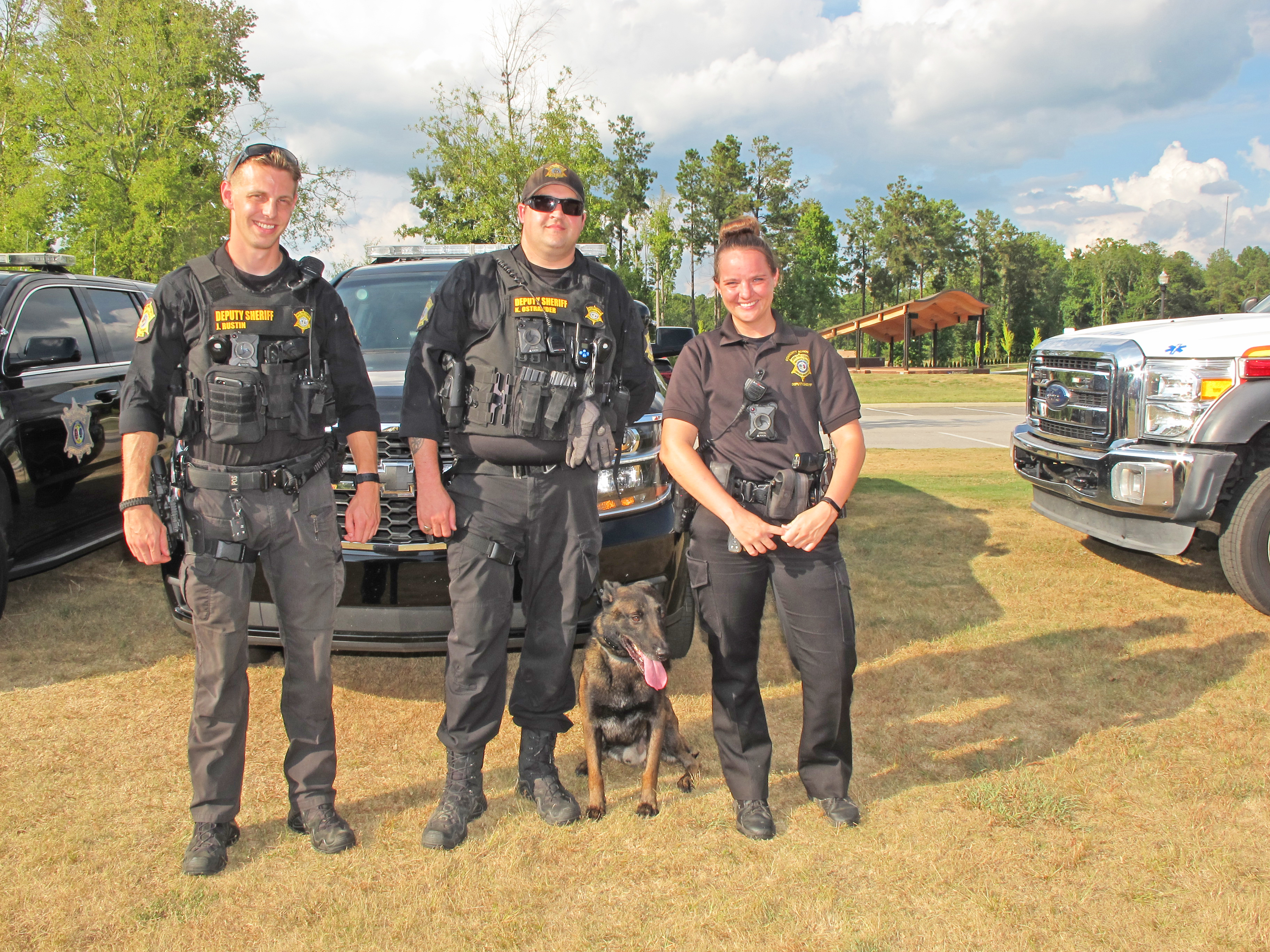 BLYTHEWOOD – The Blythewood Farmers Market was definitely a safe place to hang out last week.  Sheriff’s deputies accompanied by a K-9 deputy, firefighters, Emergency Service personnel, and all manner of first responders were on hand to demonstrate what they do best – save us from bad things.