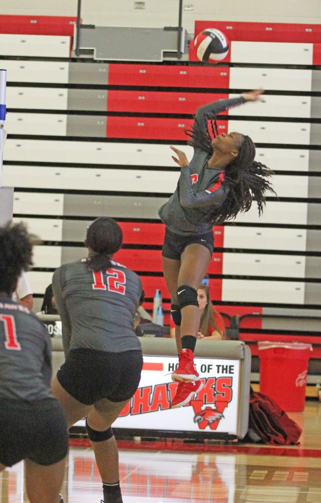 Katiya Danie (6) goes up for the kill. | Leroy Howard