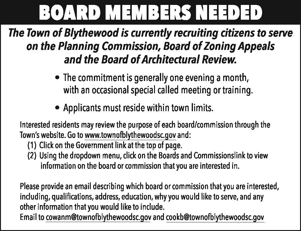 Town of Blythewood: Board Members Needed