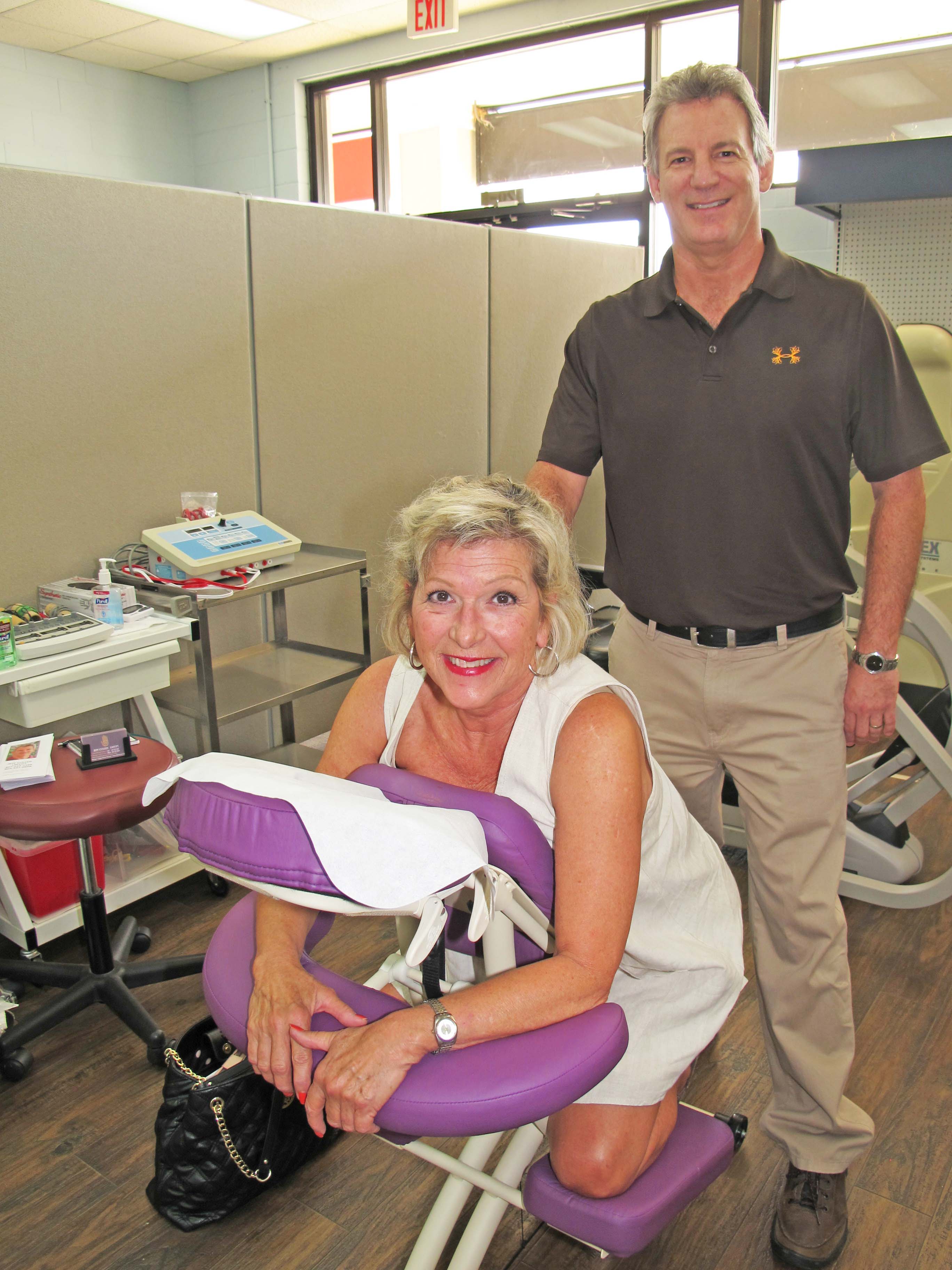 - Ridgeway resident Phyllis Gutierrez received a free shoulder massage from message therapist Jeff Cullen.