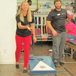 - Anna Clark and Alex Filler lead off in the cornhole contest.