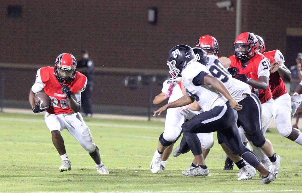 Jalen Briggman (28) finds a rare hole in the York defense. | Leroy Howard