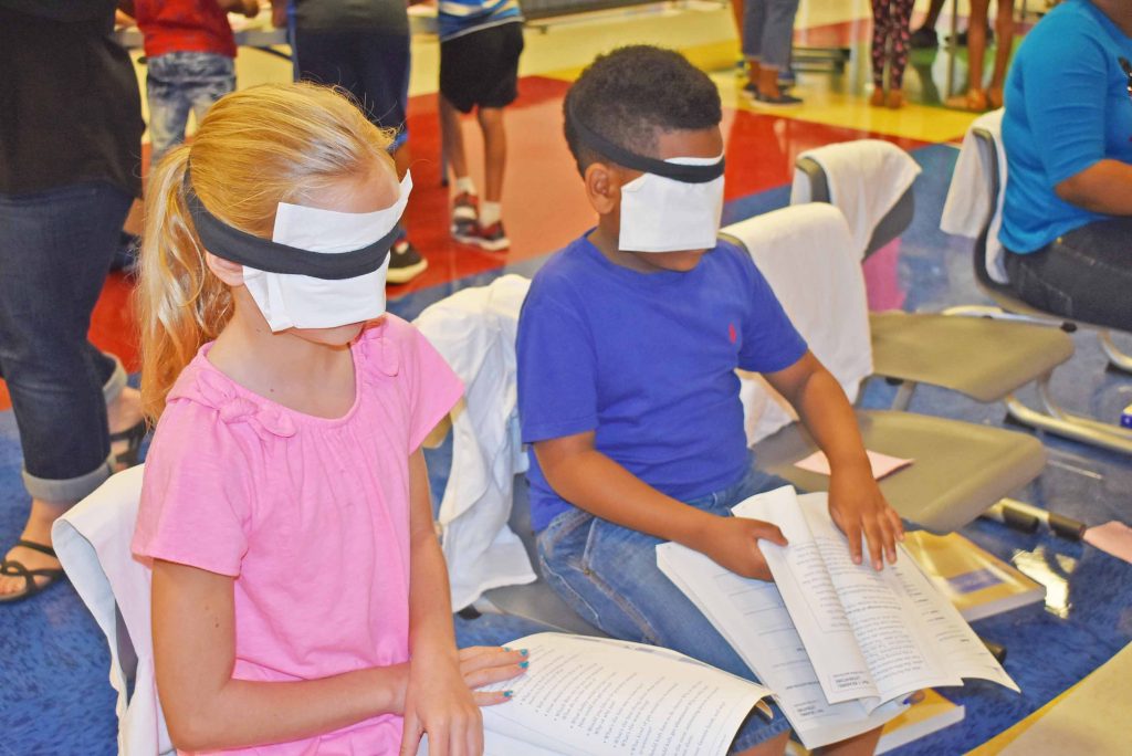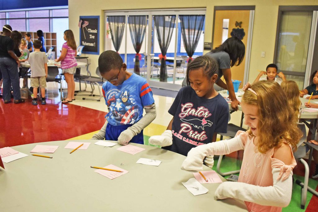 BLYTHEWOOD – At the beginning of each school year, students new to Lake Carolina Upper Campus participate in disability sensitivity training. During the training organized by school counselor Jessica Skinner, each student rotates through volunteer-run stations that simulate various disabilities and classroom teachers follow up with discussions.