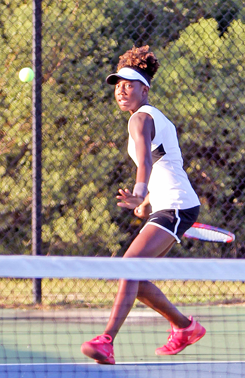 BLYTHEWOOD – Kyndall Ragins (pictured) nearly led the Redhawks to an upset over conferences foe, York High School. Meera Rogers and Kelsi Sharpe also picked up victories, but the Cougars edged Westwood out 4-3 with a win in doubles.