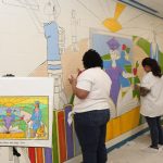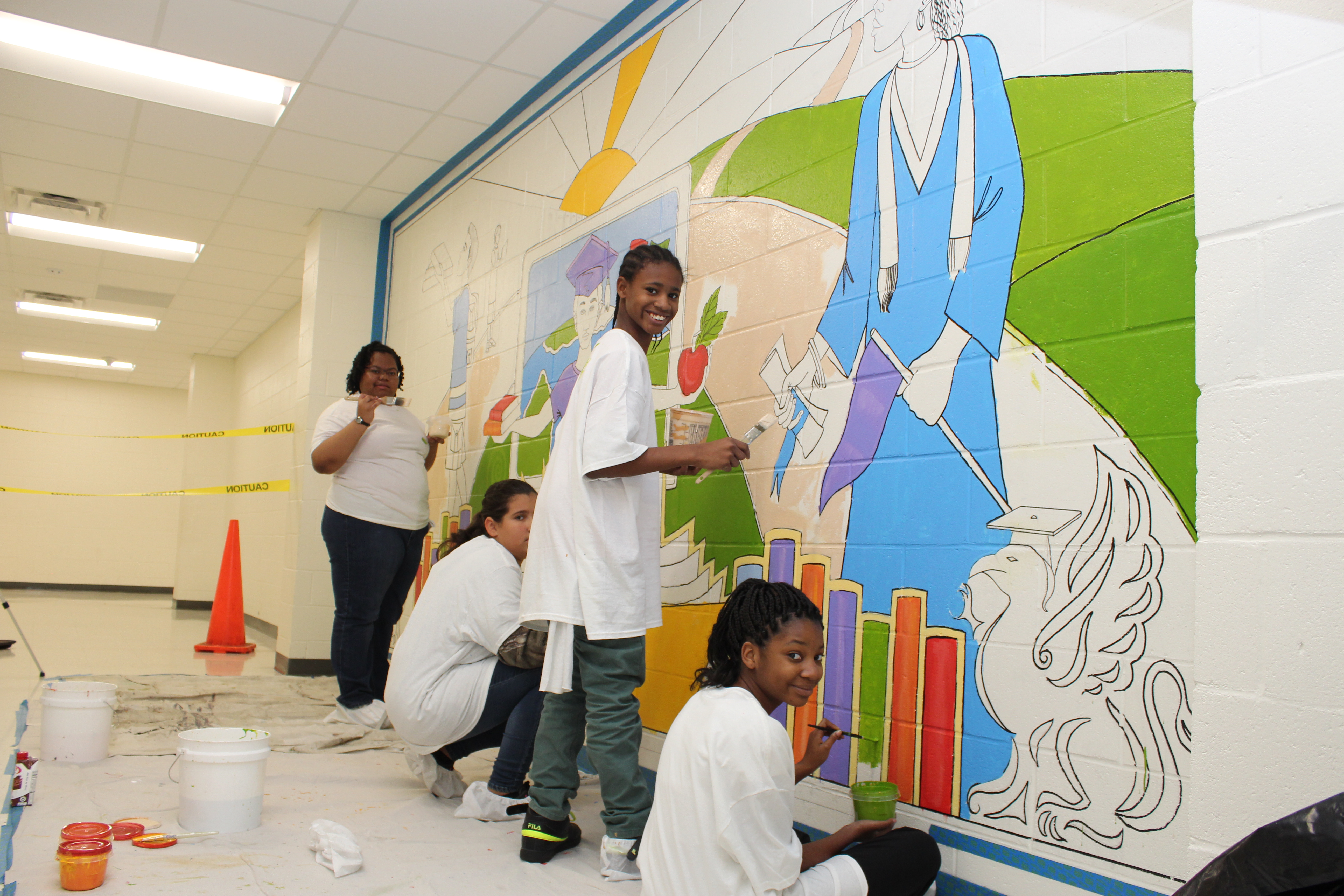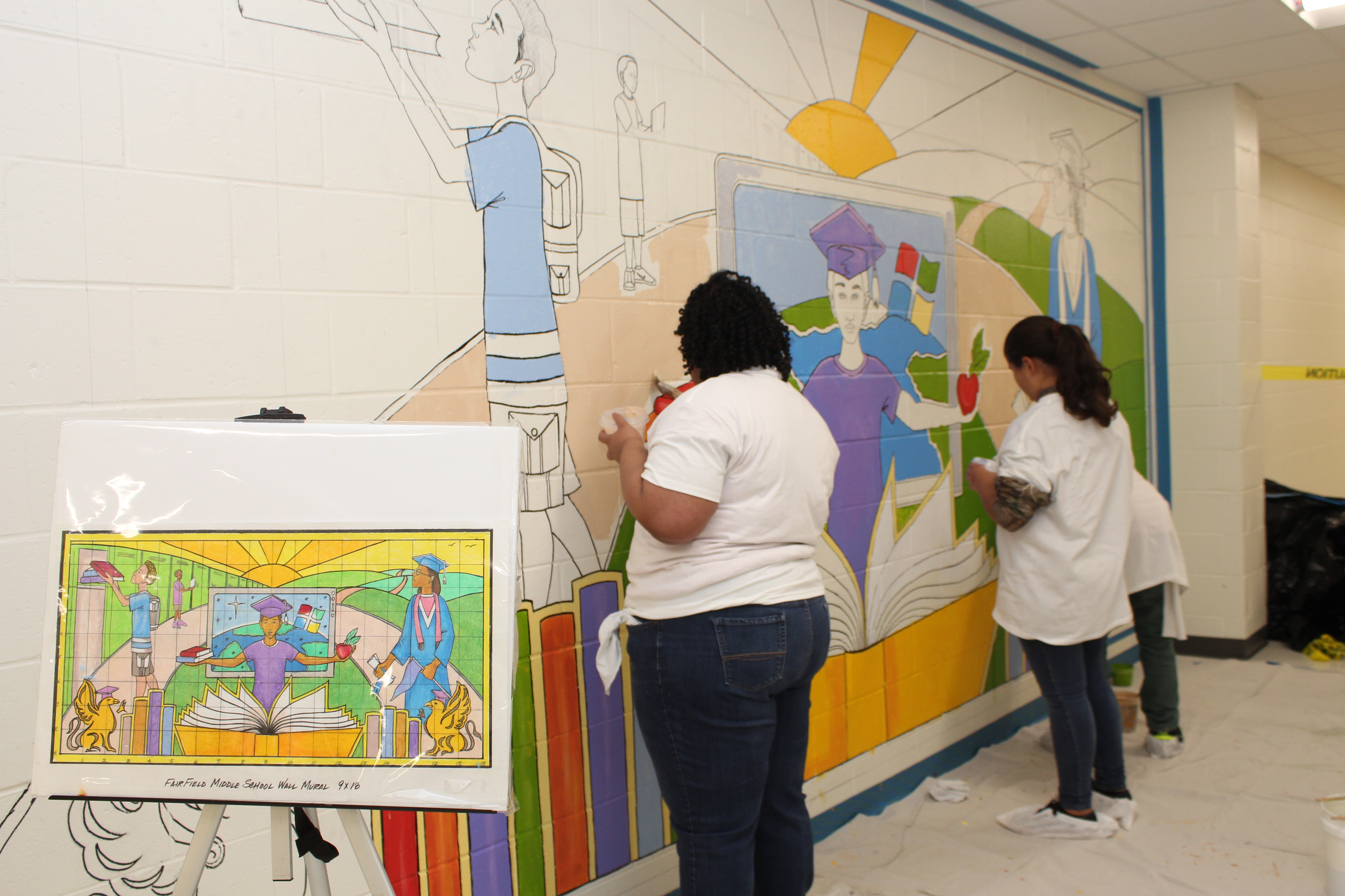 WINNSBORO – Renowned child advocacy artist George E. Miller II served as Fairfield Middle School’s (FMS) Artist in Residence for two weeks planning and creating a mural with thirteen students to showcase their talents beyond the classroom. Ideas for the mural were created by the students and sent to Mr. Miller, who compiled the ideas into one theme. The thirteen students painted on a rotating basis throughout the two weeks. The mural was unveiled in a ceremony on Nov. 2.