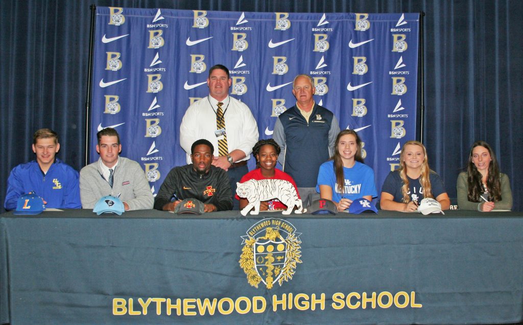 BLYTHEWOOD – Blythewood High School recognized seven members of the Class of 2019 as they announced their plans to continue their careers on the collegiate level during the early signing period.