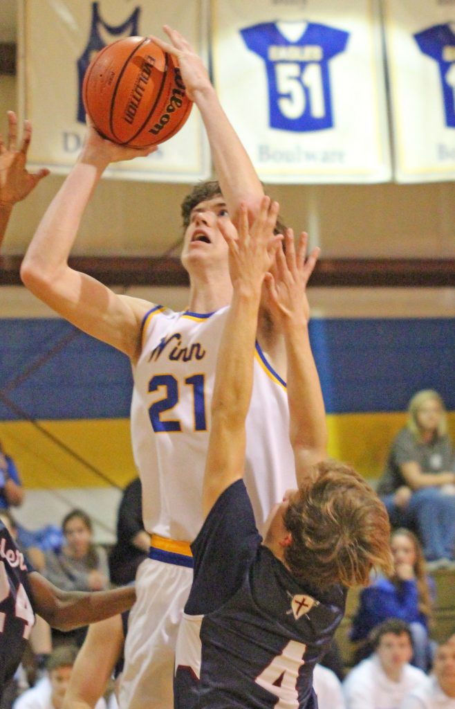 WINNSBORO – The Richard Winn Eagles rang in the New Year with a blowout victory on their home court against Laurens Academy. Hudson Wade had a team-high 16 points in the Eagles 2019 opener, and a strong second half propelled RWA to a 48-33 win.