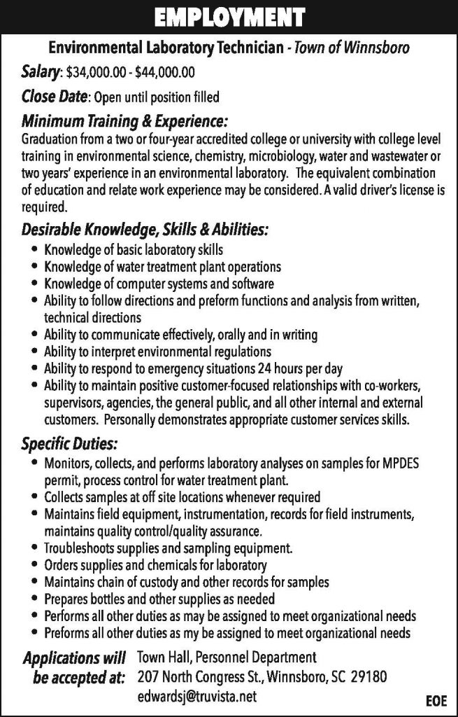 Employment: Environmental Laboratory Technician