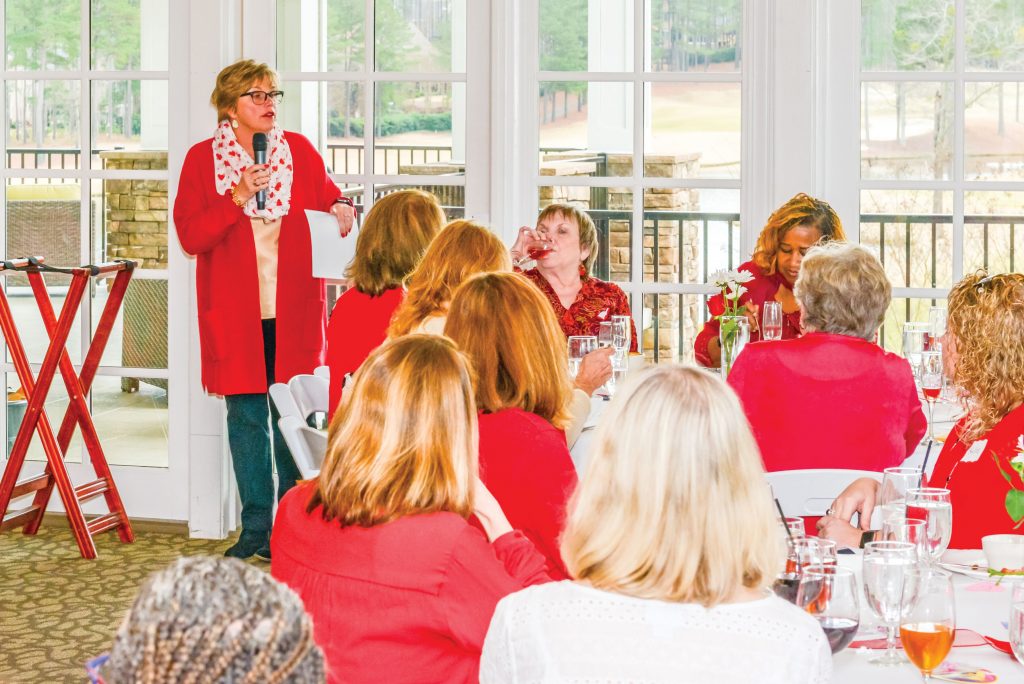 BLYTHEWOOD – Galyle Dunning and Madeline Mills invited the ladies of Cobblestone to a Valentine’s Day luncheon in the Clubhouse ballroom last week where they enjoyed a fashion show by the Ridgeway boutique Bella & Blue. Of the $20 luncheon fee, $5 went to the American Heart Association.