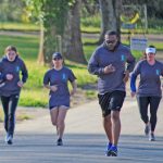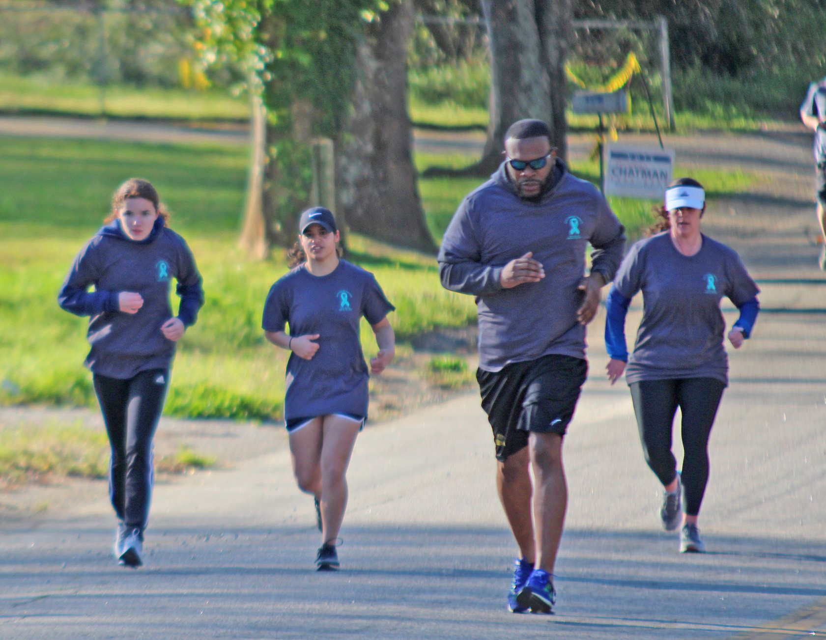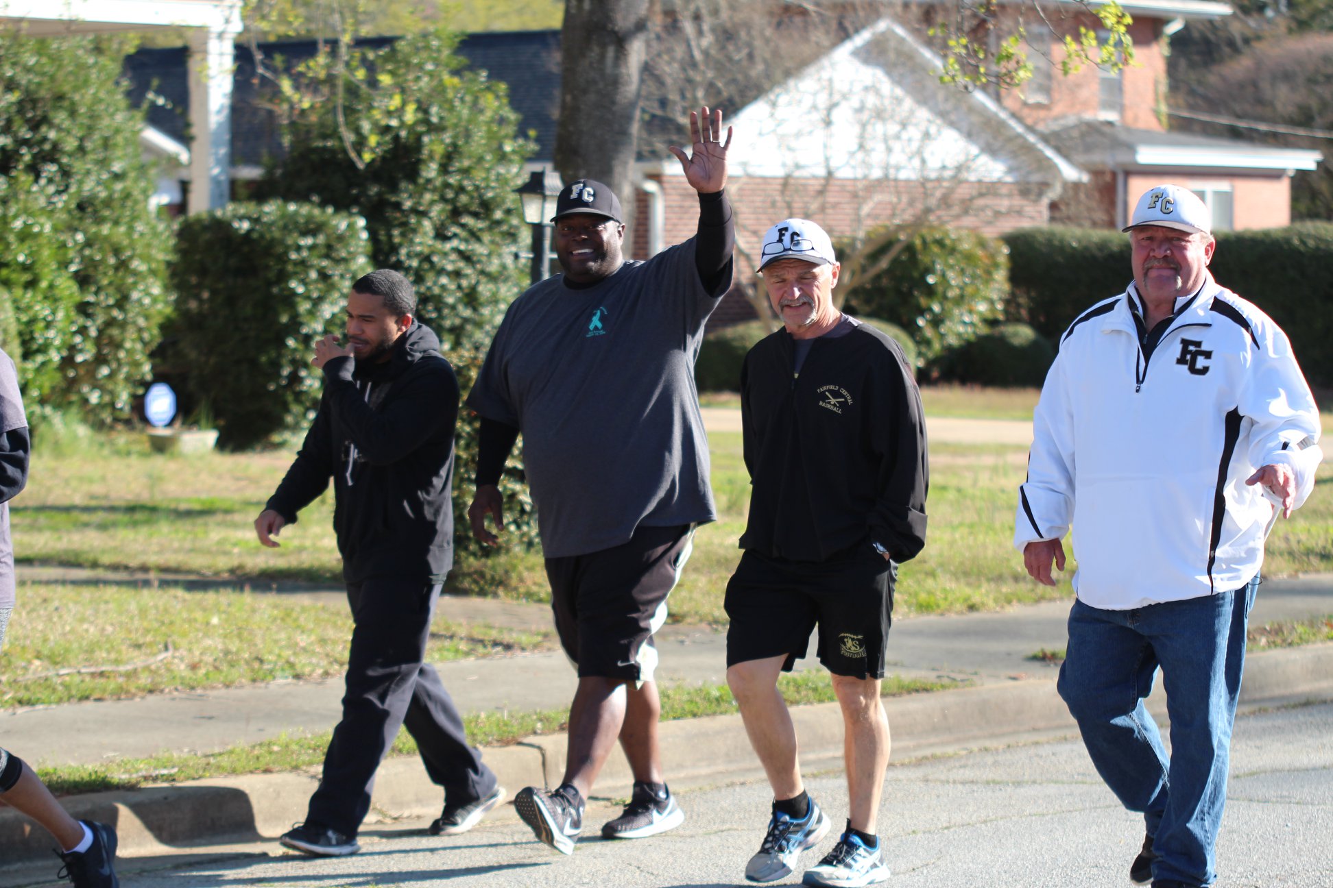 - Richard Winn students Cam McLendon, left, Hannah Gibbons and alum Katherine Brown Wolfe, right, trail Fairfield Central football coach Demetrius Davis.