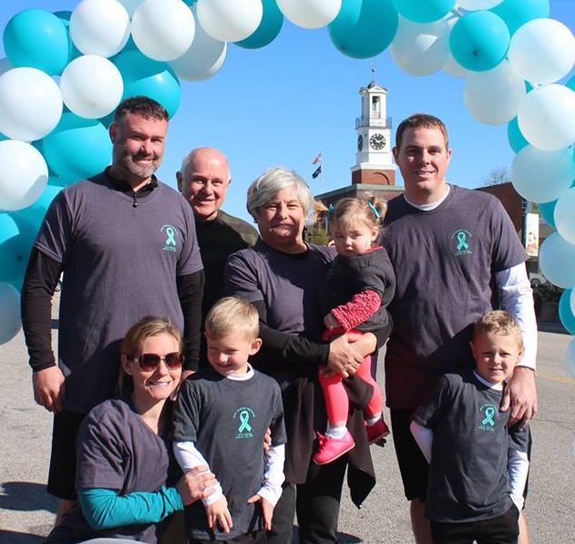 Family members of Jenni Sharpe: Shannon Caldwell (kneeling) with son Tripp, Heath Caldwell, standing left, Johnny Caldwell, Cheryl Caldwell, holding Molly Claire Caldwell, and Ryan Sharpe with son John Ryan. | Photos: Martha Ladd