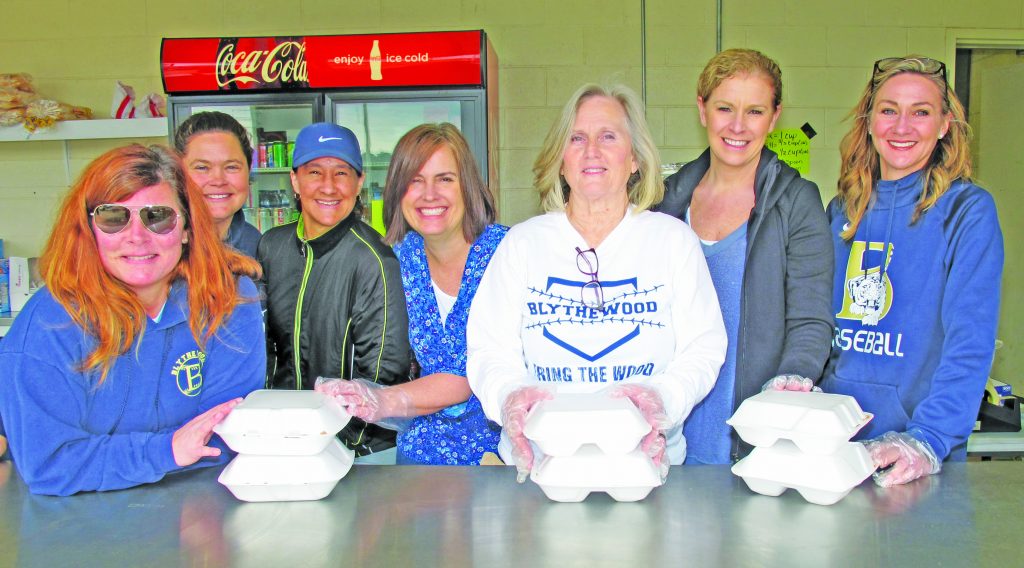 BLYTHEWOOD – The first BHS Baseball game of the season included the annual BBQ fundraiser. Parents manning the sales booth included, from left: Leslie Leppert, Kiersten Rollings, Danielle Hucks, Susan Valseechi, Tina Lucas, Teri Todd and Bettina Weisinger.