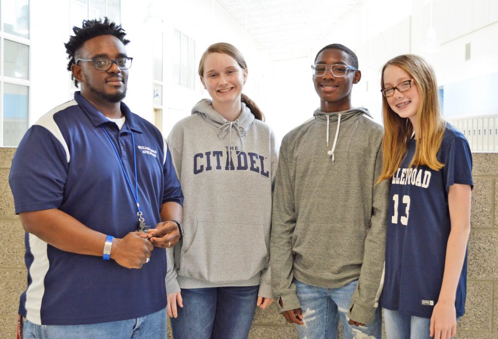 COLUMBIA – Muller Road students Jessica Whitlock, Luther Bells and Madison Tankersley, pictured above from left with teacher Levorn Miller, participated in the annual Science and Engineering Fair at USC on March 15.