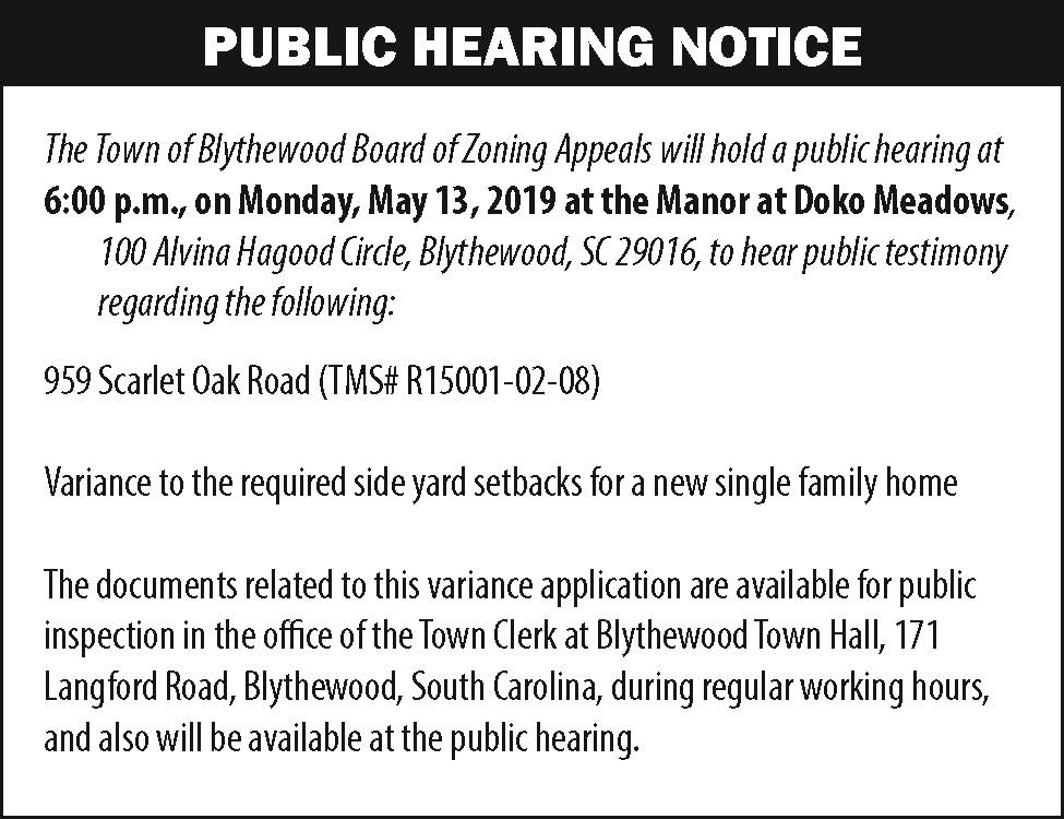 Public Hearing Notice: Blythewood Board of Zoning Appeals