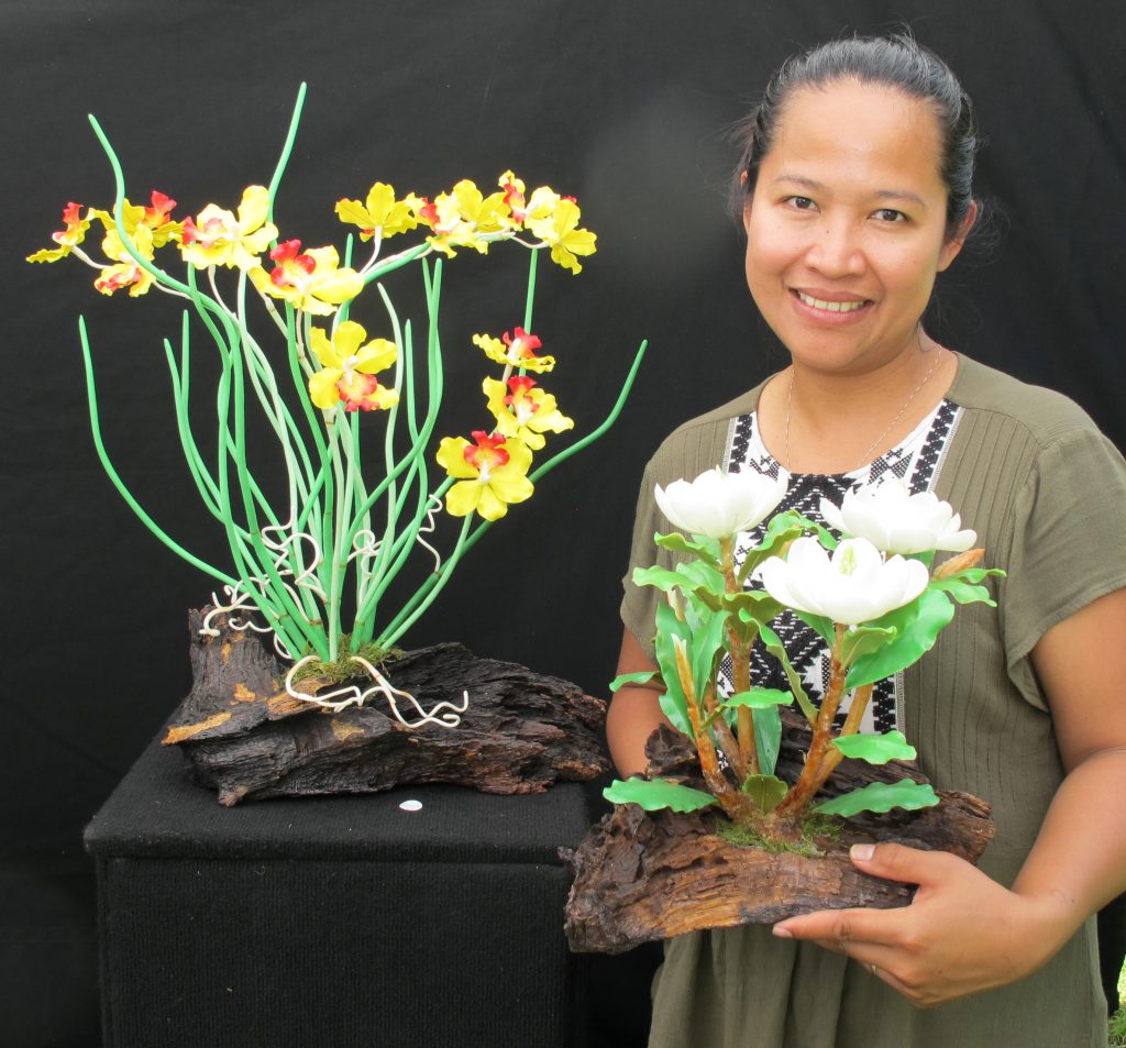 “I can’t get those types of clay here,” she said. “The clay available here breaks easily. The quality of Thai and Luna clay is like Japanese clay. Luna clay is soft and delicate, and creates a more realistic-looking flower. Thai clay is hardier, and better for stems and leaves.”