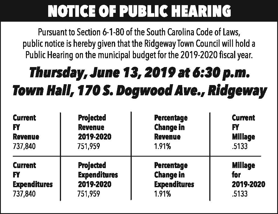 Notice of Public Hearing – Ridgeway Town Council municipal budget