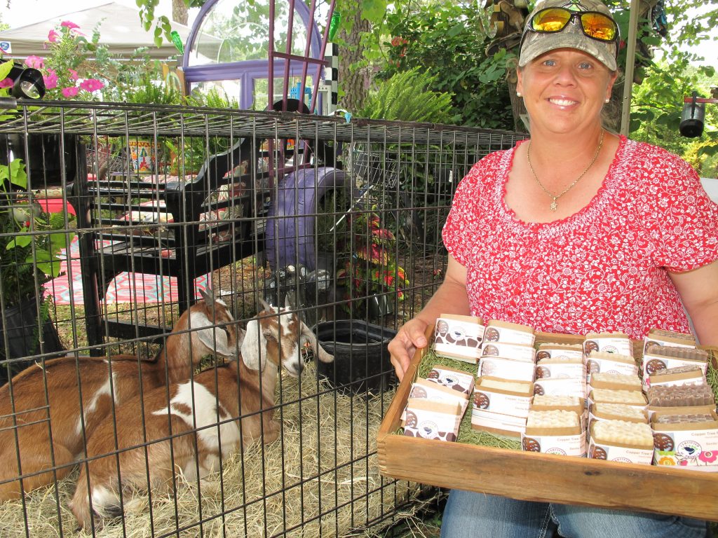 Donita Bailey with goats and goatmilk soap.