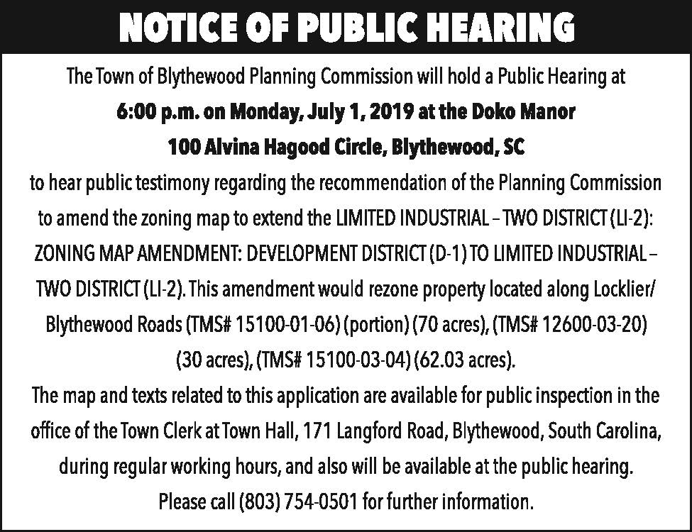 Notice of Public Hearing: Blythewood Planning Commission