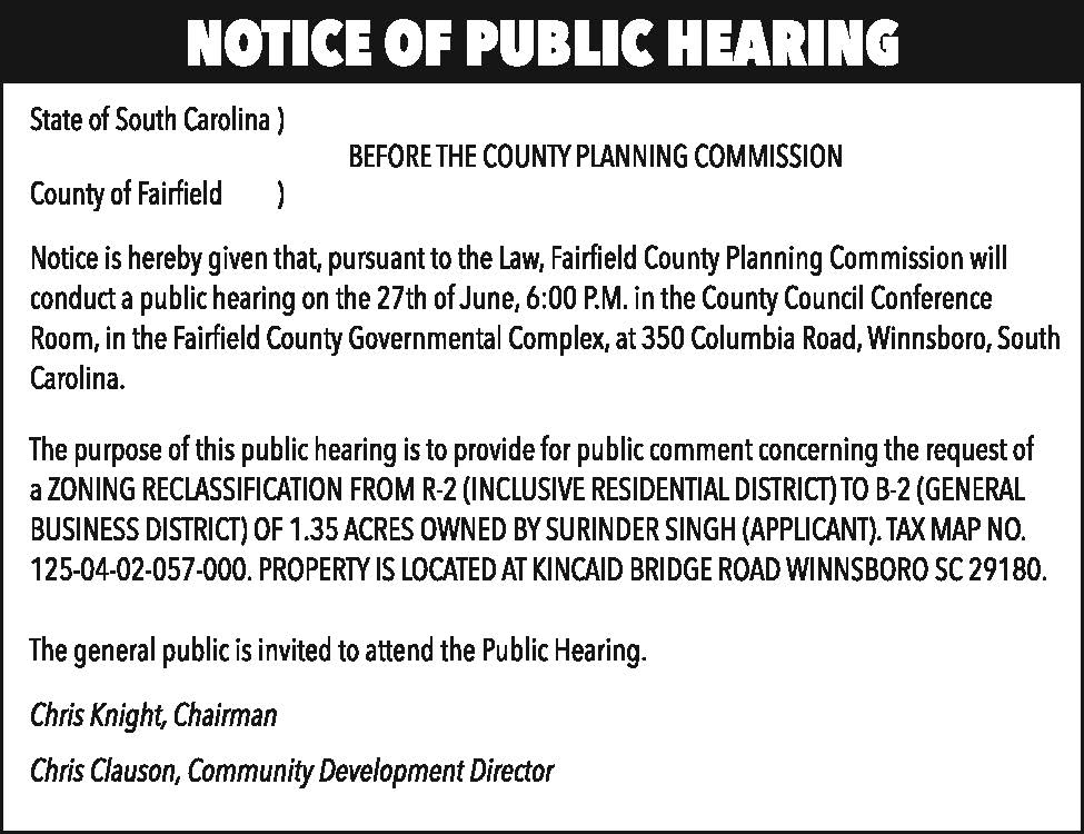 Notice of Public Hearing: FC Planning Commission