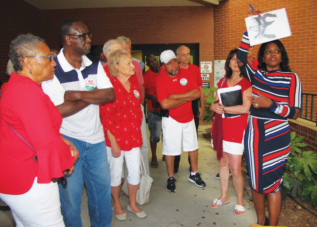 Dr. Traci Cooper, right, rallies her Crickentree neighbors outside Council chambers Tuesday night following a second defeat by County Council. | Barbara Ball