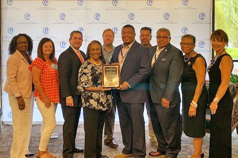 HILTON HEAD – The South Carolina Department of Disabilities and Special Needs (DDSN) awarded Fairfield County the 2019 Golden Palmetto Award for making the lives of people with disabilities a priority in 2018. In particular, Fairfield County was recognized for employing people with disabilities, attending local events put on by the FCDDSN board, and providing financial support to the FCDDSN board. Fairfield County Council Vice Chairman Bertha Goins and Chairman Neil Robinson, center, accept the award.