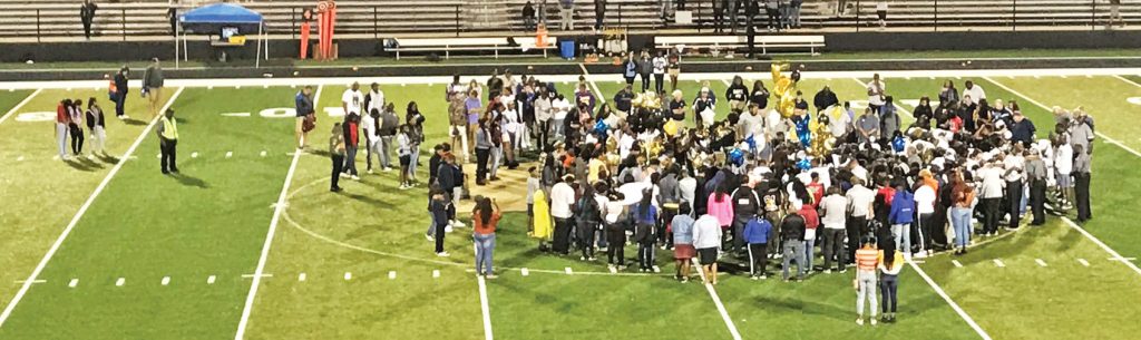 WINNSBORO – Following a tough game, players and fans from Newberry and Fairfield Central joined at midfield for a moment of silence to remember fallen teammates: CJ Simmons (Fairfield) and Devonta Ruff (Newberry).