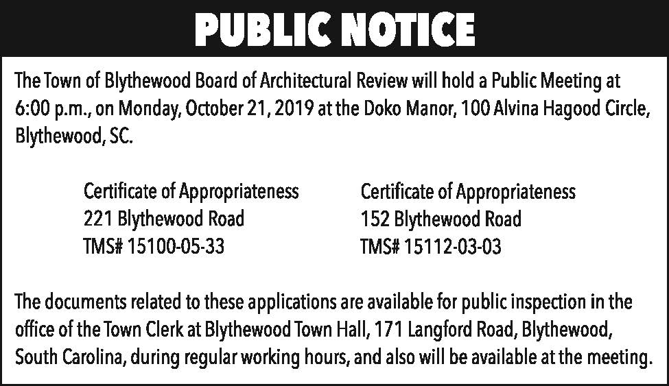 Contact us: (803) 767-5711 | P.O. Box 675, Blythewood, SC 29016 | info@blythewoodonline.com