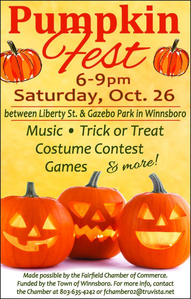 WINNSBORO – The annual Pumpkin Fest – a gathering of fun-loving young ghosts and goblins in downtown Winnsboro – will occur this Saturday evening from 6 – 9 p.m. on S. Congress Street between Liberty Street and the Gazebo Park.