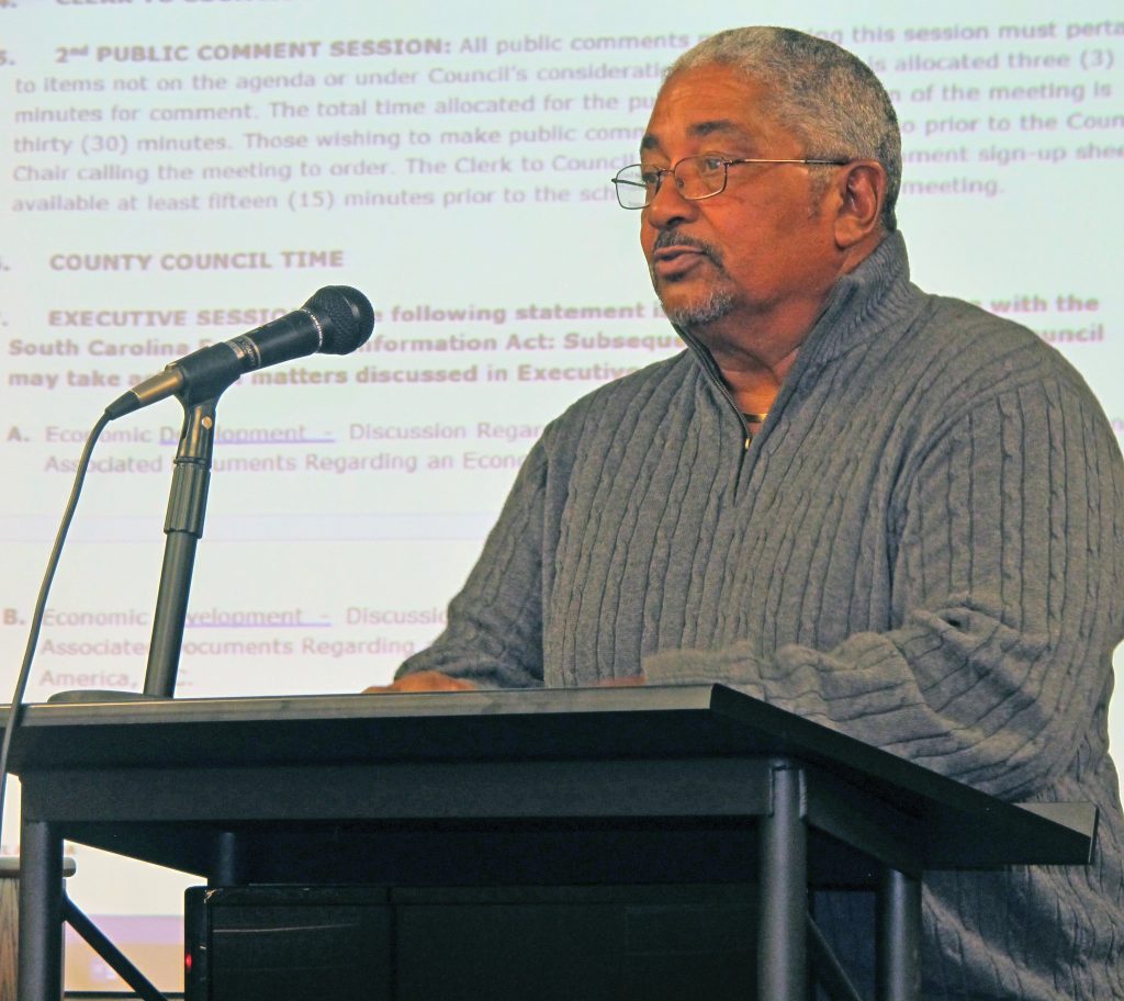 WINNSBORO – During the second public comment segment at the end of Monday night’s county council meeting, Jenkinsville Mayor Gregory Ginyard stunned council members when he came to the microphone to disclose what he said is a rumor that council is considering an economic development project in the Jenkinsville area and that it has kept that information secret for eight months.