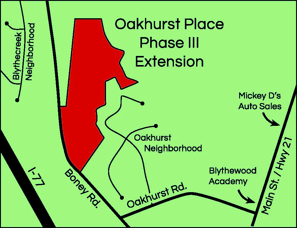 Bucky Drake of Drake Development and property owner Jim Perryman requested sketch plan approval for Oakhurst Place Phase III, a 12-parcel, eight-acre site located in the rear of the existing Oakhurst Subdivision off Oakhurst Road.