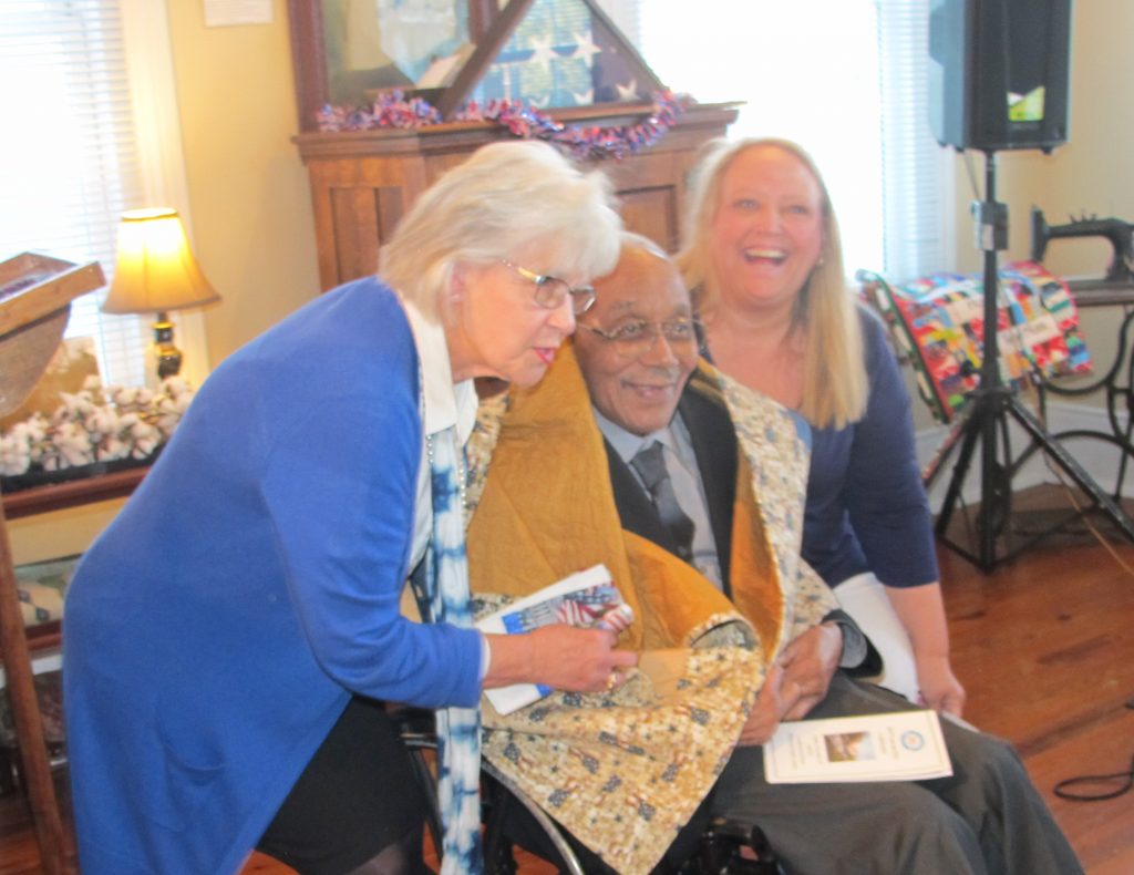 Christie Lomas recited the poem, ‘This Raggedy Old Flag,” and Donna Royson, a quilter with the Quilts of Valor program, presented quilts to three local veterans – James Ard (U.S. Army), Viet Nam era Army veteran Alton Finley and World War II Army veteran Isiah Ellison.