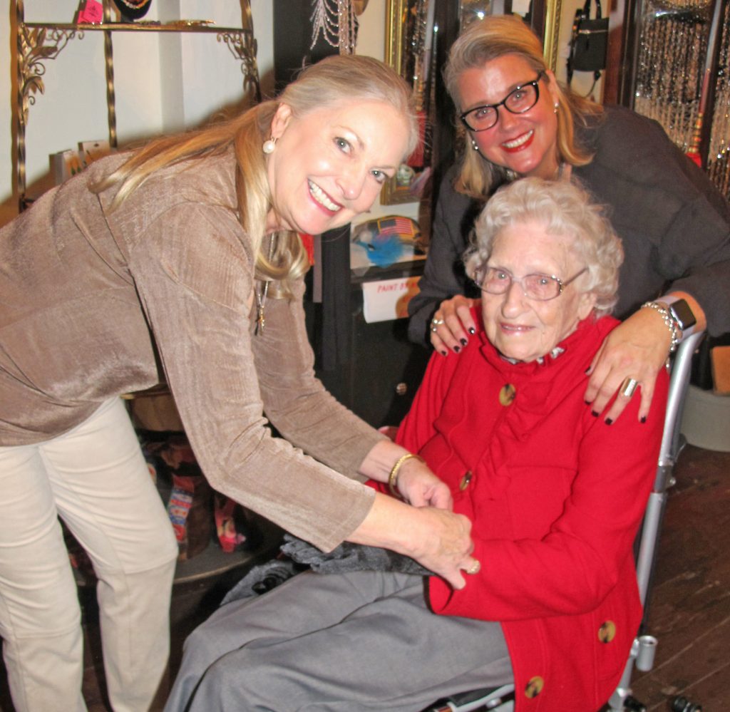 “This is what small towns are all about, Johnson said as she and store manager Carla Pinnick brought out coats and hats for Faust’s selection. Accompanied by her daughters Sandra Prince and Cheryl Bullock and son-in-law Carl Bullock, Faust settled on a stunning red wool jacket by Luii, pared with black slacks, black gloves and a chic red tam.