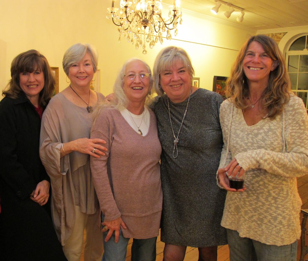 RIDGEWAY – Celebrating Ridgeway’s First Friday at the Fairfield County Arts Council Friday night were Rebecca Carpenter, Patti Estes, Jeannie Roundy, artist Barbara Yongue and Jayne Blumberg.