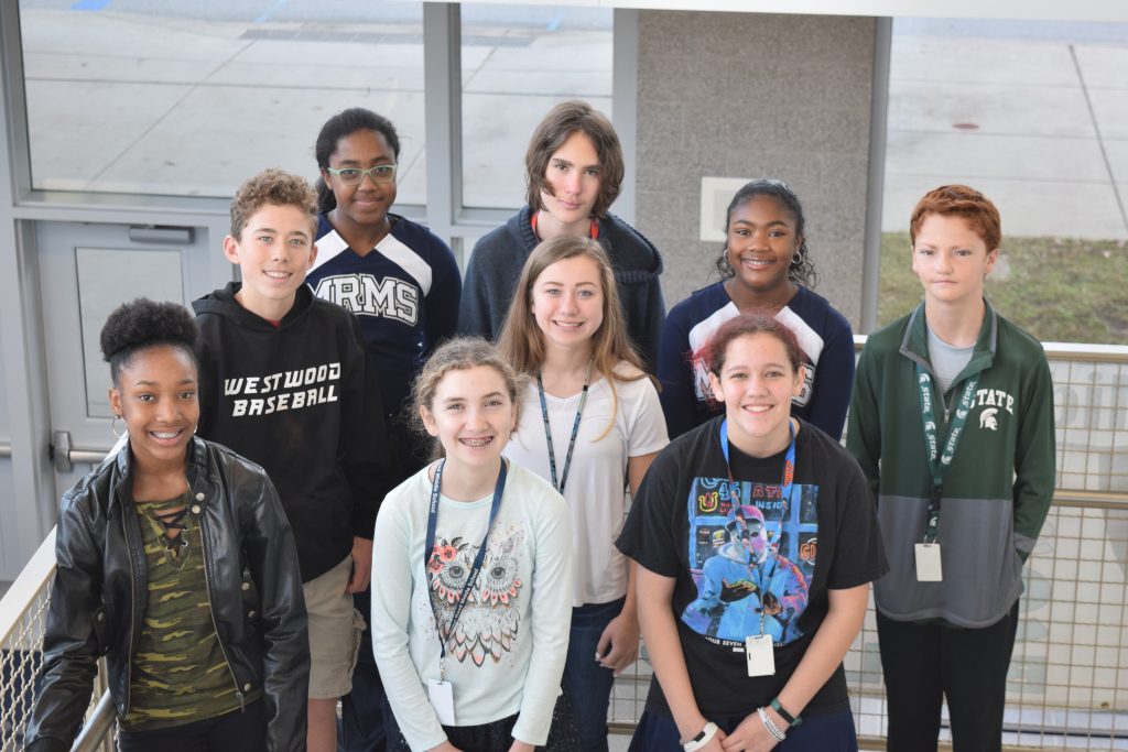 BLYTHEWOOD – Muller Road Middle announces 2019-2020 Junior Scholars. From left: Journei Simmons, Sydney Sutherland, Alexis Le Rouzic, Rilan Cunningham, Anna Graves, Rachel Brown, Jason Sobel, Ella Boston, and Zachary Freeman