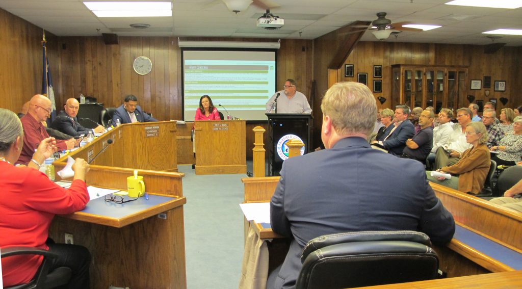 David Valentine, who also lives on Center Creek Road, said the county’s proposal would be using antiquated processes. He addressed the wastewater treatment plant as being located on an industrial site.