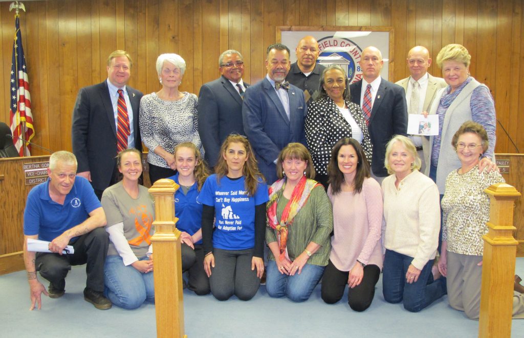 WINNSBORO – Fairfield County voted unanimously Monday night to unleash a ban on animal tethering, an important protection animal advocates say will help reduce animal injuries and abuse cases. Members of the Hoof and Paw Benevolent Society as well as staff from the county animal shelter were on hand to celebrate the ordinance.