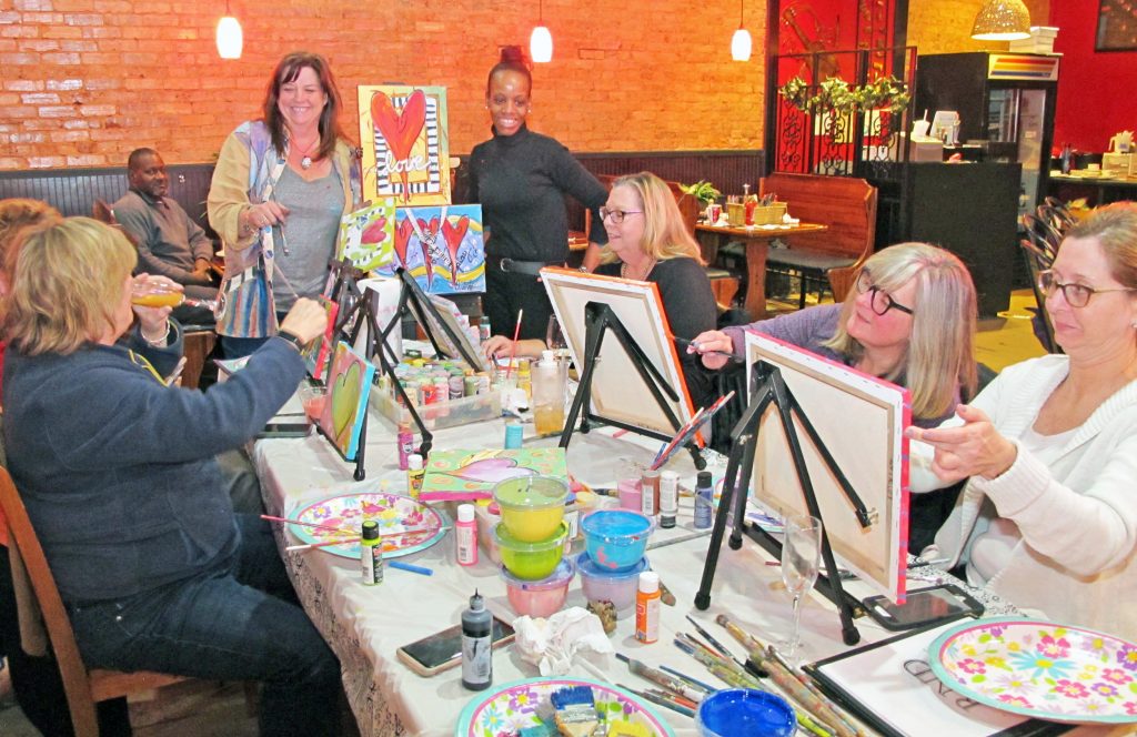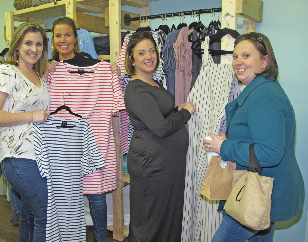 Jerrica Beam, left, owner of To Be Stitched mingles with customers Kathryn McDaniel, Nikki Goode and Jessica Collins.